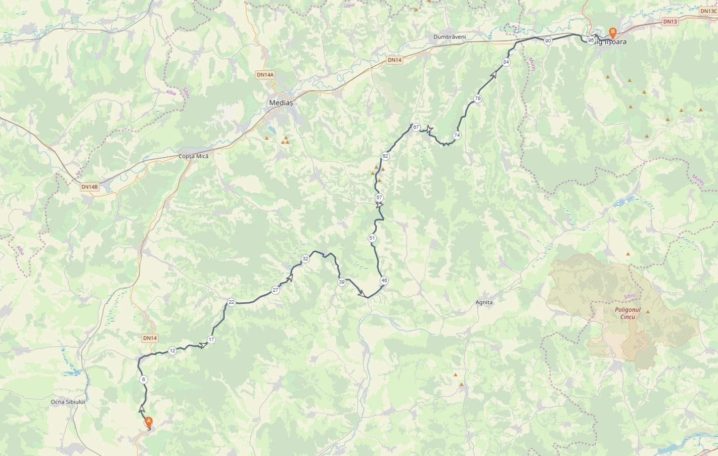 Dacă vreți să mergeți la o cafea duminică și nu știți unde, recomand traseul acesta până la Sighișoara. Este un drum ușor de parcurs, chiar și pe secțiunile de offroad. S-ar putea să întâlniți câteva stâne și porți electrice pentru animale – vă rog să le închideți după ce treceți.